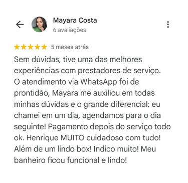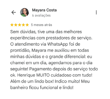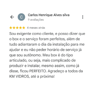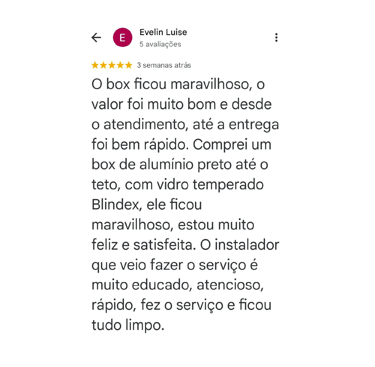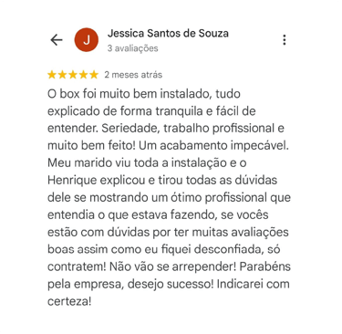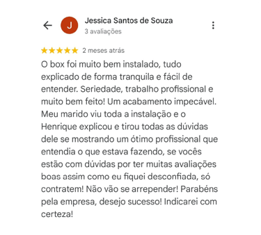 Seu Box de Vidro pronto em até 3 dias, com garantia de 1 ano e pagamento após a instalação.